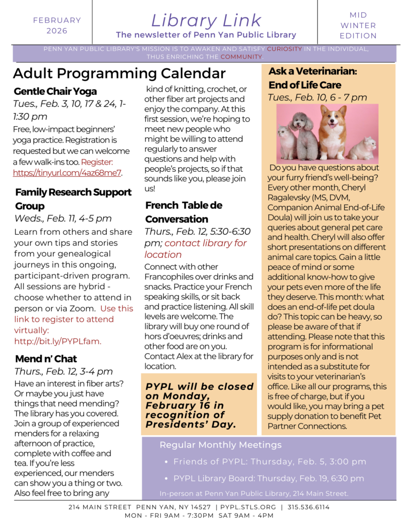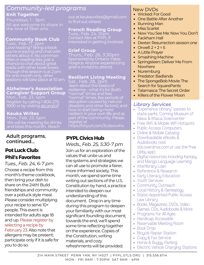 Click here to download the February 2026 adult and youth Library Link (PDF)