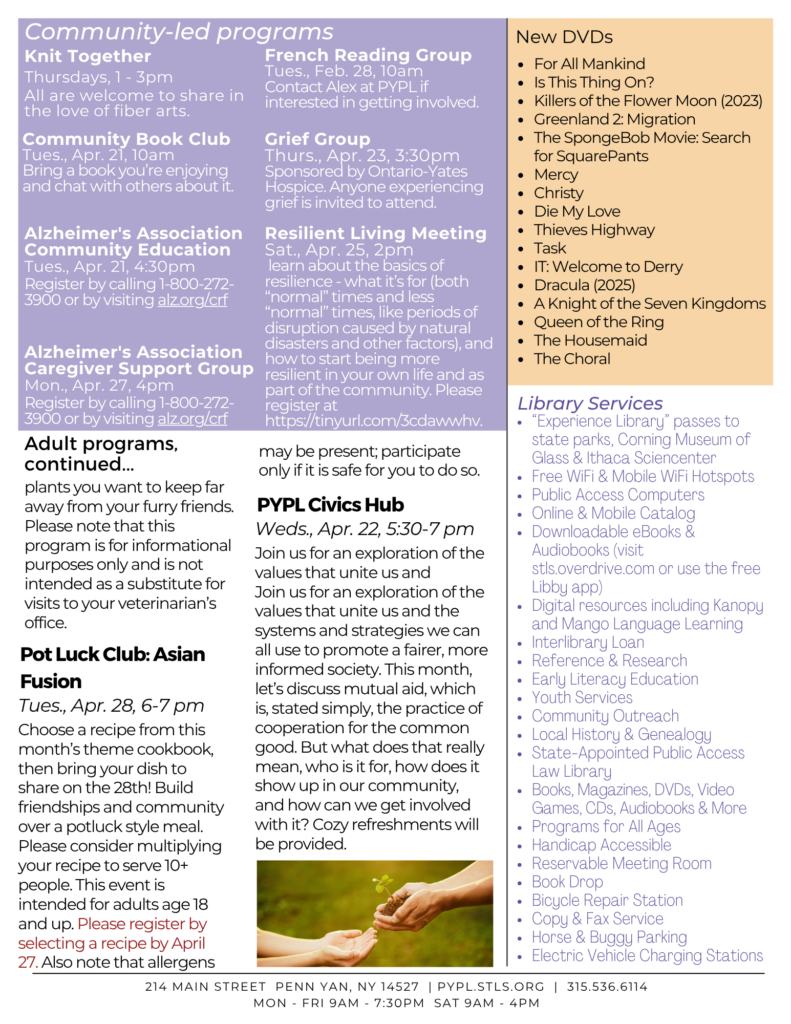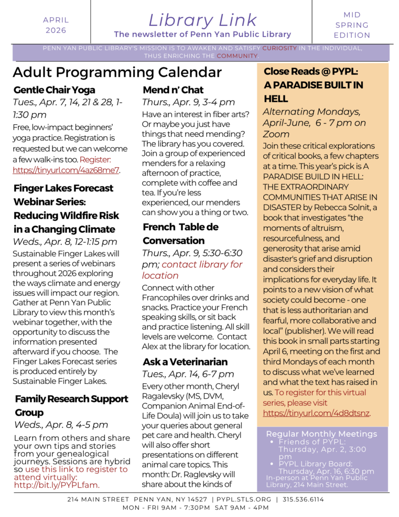 Click here to download the April 2026 adult and youth Library Link (PDF)